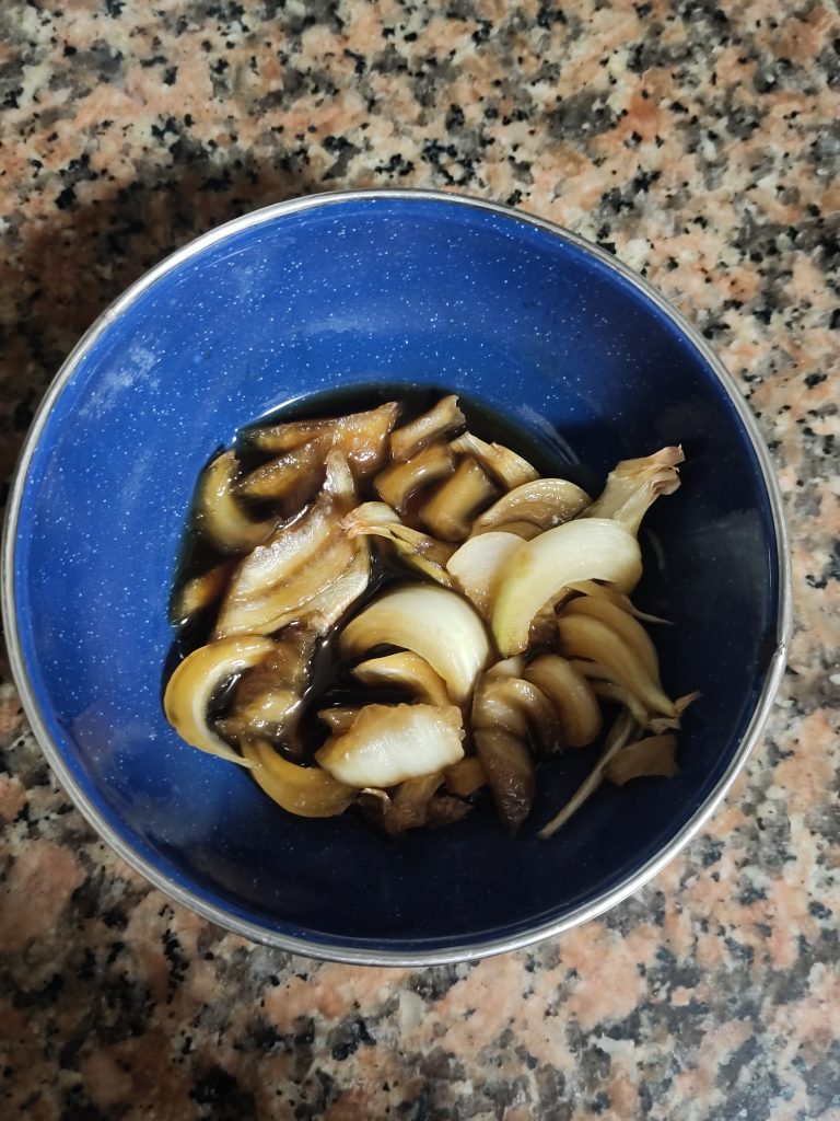 Morning rituals: In autumn, to prepare for winter, I set up a little portion made of apple vinegar (preferably unfiltered) and a lot of antibiotic ingredients. Basically whatever you find – I mostly put fresh ginger, turmeric, dried chilli, a bay leaf, a cut onion and 3,4 cloves of garlic, cardamom, clove. I let the closed jar rest for some time (at least 3 weeks). Then, when time is ready, I sieve the infused vinegar and put just the liquid back into the jar. You give your immune system a great boost, if you take a spoon of this liquid every morning. The remaining solids I use for cooking, e.g. for Indian curries or soups like a minestrone.