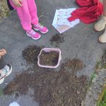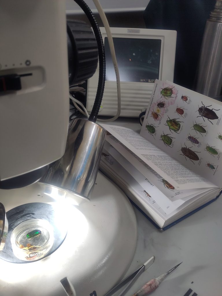 After the soil safari, once back in the laboratory, I am identifying the different soil organisms with the help of a magnifying glass (a very good one, looking almost like a microscope).
